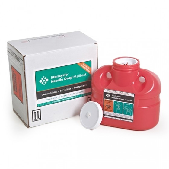 Provides a complete turnkey collection and disposal process for simplified management of used needles, syringes and other small quantities of medical waste. The Stericycle® Mailback System is government approved and comprised of a custom designed, FDA approved mailable sharps container, a postage prepaid return-by-mail shipping box, manifest and instructions for use. When the drug therapy is concluded, or when the sharps container is full, the patient or nurse places the sharps container back into the provided return packaging. The return packaging and the enclosed sharps container are then mailed to a Stericycle® treatment facility for destruction. The weight and destruction of each system is documented. Hard copy certification of proper disposal is returned to the generator and available online at meStericycle.com. Other sizes and systems also available.